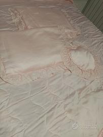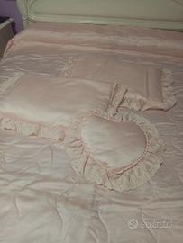 Copriletto matrimoniale rosa con 3 cuscini.