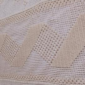 Copriletto matrimoniale all'uncinetto fatto a mano in cotone finissimo. Mai usato. Dimensioni generose (300 cm x 300 cm), perfetto per letti king size, o alti (con contenitore). Colore panna e écru.