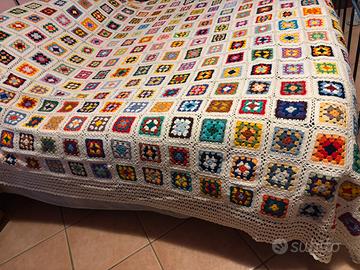 Copriletto matrimoniale fatto a mano ad uncinetto di lana
