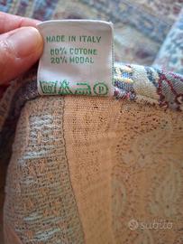 Vendo copriletto matrimoniale in cotone fantasia misure cm. 230 x230 rifinito con bordura su tre lati + 2 cuscini tinta unità tessuto di copertura cotone.