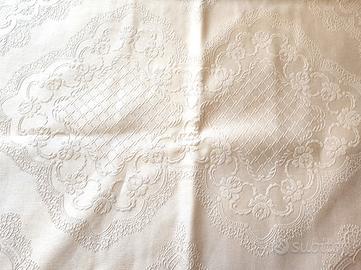 Misure circa 270x250cm tenuto molto bene, un copriletto elegante, fatto con un tessuto beige rilassante che si amalgama bene in una stanza dai colori tenui. In ottime condizioni, non presenta strappi né macchie