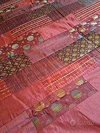 copriletto matrimoniale misure cm 220x280 in colore rosso bordogna con inserti in raso con 2 federe cm 46x 71.