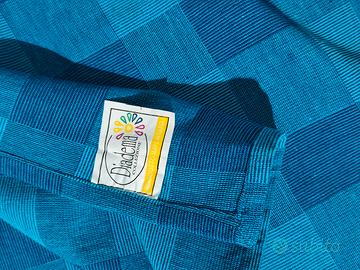 Copriletto marca Diadema nuovo, mai usato, mai lavato. Vintage, anni "90. Puro Cotone al 100%. Misura cm 275x275. Fantasia a quadrettoni blu tono su tono. Il marchio Diadema è associato alla F.lli Martinelli, un'azienda tessile fondata nel 1962 a Leffe, in provincia di Bergamo. La loro produzione si concentra principalmente su biancheria per la casa: trapunte, copriletti ecc.. Il tessuto nell'immagine presenta una trama a quadretti blu e azzurri, tipica di un copriletto o un telo. Può anche essere utilizzato come tovaglia su un grande tavolo quadrato. Perfette condizioni, nessun difetto.