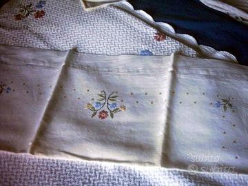 vendo copriletto in pique di cotone ricamato con federe e lenzuolo sopra ricamato. ad euro 160 .