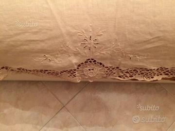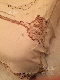 Bellissimo copriletto in puro lino ricamato a mano e impreziosito da pizzo burano