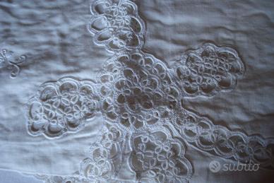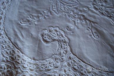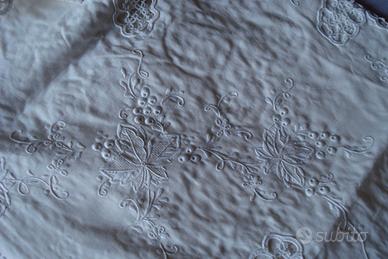 Copriletto da antichi corredi. Ricamo interamente a mano, stupendo.