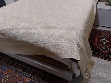 Si vende copriletto sardo artigianale in cotone pesante con motivi di decoro in rilievo. Misure 260 x 260 cm, peso 6 kg colore ecrou, nuovo mai utilizzato.