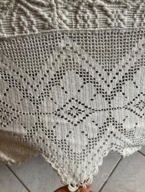 Vendo copriletto sardo realizzato al telaio anni 50/60 con pizzo all’uncinetto tutto fatto a mano. Presenta segni del tempo (giallo), ma smacchiandolo ritornerà bianco. Misure: cm 230x268
