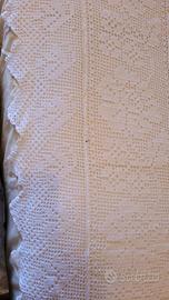 Vendo copriletto singolo in cotone pique' con orlo all'uncinetto fatto a mano circa 60 anni fa.