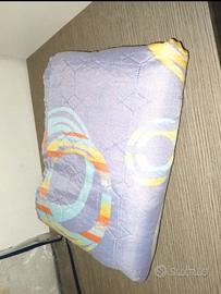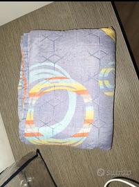 Vivace copriletto per letto singolo (1 piazza) firmato Italian Bed Linen, linea "Fantasy" Made in Italy. Caratterizzato da una moderna fantasia a cerchi concentrici astratti nei toni del lilla, giallo, arancione e azzurro.