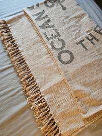 COPRILETTO matrimoniale cotone 100%, utilizzabile anche come telo mare, copri divano ecc. Colore sabbia scritte verde militare. misura 200cmx230cm