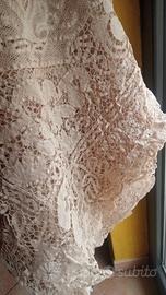 Copriletto / Tovaglia antica in pizzo a fuselli – opera integrale stile Pizzo di Cantù 👑 Straordinario manufatto d’epoca realizzato interamente a mano in pizzo a fuselli, senza alcun supporto in tessuto: un’autentica opera d’arte tessile, rara da reperire in queste dimensioni e condizioni. Grazie alla sua ampiezza e alla ricchezza decorativa, questo pezzo può essere utilizzato sia come tovaglia di rappresentanza che come copriletto decorativo di grande impatto, ideale per ambienti eleganti e dimore di pregio. La struttura è composta da una raffinata rete a maglia irregolare lavorata manualmente, che unisce armoniosamente importanti motivi decorativi. Il disegno presenta grandi medaglioni figurativi di ispirazione classica, con elementi floreali e composizioni che richiamano urne ornamentali, tipiche dei corredi aristocratici tra fine ‘800 e primi ‘900. La lavorazione è eseguita con la complessa tecnica a fettuccia continua, segno distintivo dei merletti di altissimo livello, che richiede grande maestria e precisione. All’interno dei motivi si alternano diversi punti di riempimento, creando raffinati giochi di trasparenze e profondità. Il bordo è rifinito con una scenografica balza a festone sagomato, che dona movimento e leggerezza sia su tavolo che su letto. Perfetto in ambienti shabby chic, classici o country luxury Tecnica: pizzo a fuselli lavorato a mano Materiale: filo naturale (cotone/lino) Colore: ecrù naturale Epoca: prima metà ‘900 Le creazioni interamente in pizzo sono estremamente rare e richiedono centinaia di ore di lavorazione artigianale. Questo esemplare rappresenta una perfetta sintesi di eleganza, tecnica e tradizione italiana. Un oggetto unico, adatto sia all’uso che al collezionismo. #pizzodicantu #pizzoantico #coprilettovintage #tovagliadipregio #biancherialusso #artigianatoitaliano #merlettoantico #homecouture #shabbychicluxury #collezionismo #arredamentodipregio