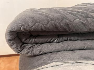 Vendo copriletto trapuntato, dimensioni 190 x 210 cm. double-face, grigio chiaro/grigio scuro in puro cotone. Molto caldo e ben tenuto. Consegna a mano zona Sud Milano