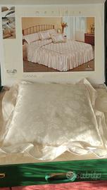 Vendo copriletto trapuntato jaquard per letto singolo 180x270, con volant e un cuscino colore panna, nuovo mai usato e mai uscito dalla valigetta.