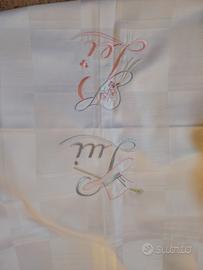 Vendo copriletto matrimoniale bianco con ricamo lui lei usato una volta.