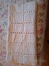 Copriletto singolo 150x300 fatto a mano con uncinetto in cotone. È stato fatto negli anni 60. È composto da 252 quadrotti. Come si vede da foto è in perfette condizioni.
