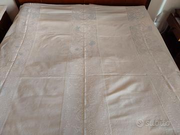 Copriletto uncinetto con tessuto fatto con telaio in casa