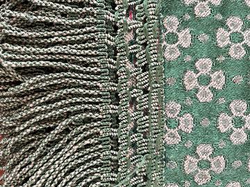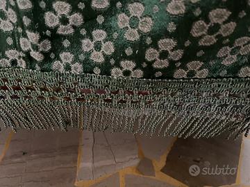 Copriletto vintage verde rifinito a mano con frange sui bordi 210x204