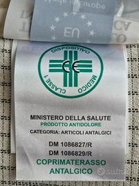 Il coprimaterasso antalgico in bioceramica Ipohpharma è un dispositivo medico antalgico di Classe 1 riconosciuto dal Ministero della Sanità coadiuvante nella terapia del dolore e per migliorare la qualità del sonno. Sono compresi due copricuscini. Misura 160x190