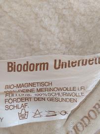 Coprimaterasso biomagnetico a una piazza in lana Merino. Imbottitura in pura lana vergine. Prodotto in Germania. Dimensioni 80x190
