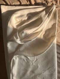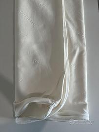 "Coprimaterasso matrimoniale di alta qualità, in condizioni eccellenti (come visibile nelle foto allegate). È stato usato pochissimo e non presenta segni di usura. Dimensioni: Matrimoniale standard. Materiale: Rivestimento premium in AMICOR PURE. Chiusura: Dotato di una pratica cerniera lampo (zip) che corre lungo 3 lati su 4. Questo design permette di rivestire il materasso con estrema facilità e rapidità, a differenza dei coprimaterasso a cuffia o con zip solo su un lato corto. Dettagli: Il tessuto presenta una texture geometrica elegante e un ricamo del logo """"Amicor Pure"""" (visibile in foto) che certifica l'autenticità del materiale. Cos'è l'AMICOR PURE e perché sceglierlo? Il materiale Amicor Pure è una fibra intelligente high-tech, leader nel settore per le sue straordinarie proprietà igieniche. È la scelta ideale per chi cerca un ambiente letto salutare e protetto. Potente Effetto Antiacaro: La fibra Amicor Pure contiene un principio attivo incorporato che interrompe il ciclo vitale degli acari della polvere. Questo lo rende essenziale per chi soffre di allergie, asma o dermatiti legate agli acari. Non è un semplice trattamento superficiale che svanisce con i lavaggi, ma una proprietà intrinseca della fibra. Efficacia Antibatterica e Antimicrobica: Amicor Pure previene attivamente la proliferazione di batteri, funghi e muffe nel tessuto. Questo garantisce un'igiene costante e un ambiente letto più fresco. Controllo degli Odori: Grazie all'azione antibatterica, impedisce la formazione dei cattivi odori causati dalla degradazione batterica del sudore, mantenendo il coprimaterasso fresco e profumato più a lungo. Mantiene le sue proprietà antiacaro e antibatteriche anche dopo numerosi lavaggi (lavabile a 40° o 60°). Il coprimaterasso è in ottimo stato. Il tessuto è pulito, privo di macchie, strappi o pilling. La cerniera funziona perfettamente su tutti i lati. Vendo per inutilizzo a causa del cambio del materasso."