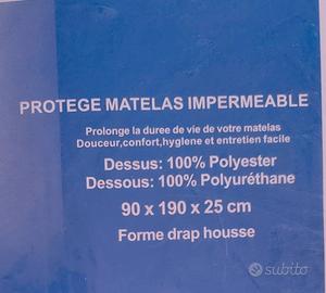 Coprimaterasso singolo impermeabile NUOVO 90×190×25 cm bianco , con angoli e elastico. Ancora nel sacchetto originale, mai usato per misura errata.