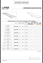 Coprimuri in cemento levigati colore bianco , INNOVATIVO - UNICO - RESISTENTE E VELOCE . 1 pezzo = 1 metrolineare. Finitura Simil-marmo superlevigato , sistema incastro, antigelivo, idrofugato, superpressato, sistema antigoccia per evitare il gocciolamento sui muri. Misura int. 14.50 13.00 al metrolineare Misura int. 16.50 13.00 al metrolineare Misura int. 22 14.00 al metrolineare Misura int. 27 17.00 al metrolineare Misura int. 32 22.00 al metrolineare Misura int. 37 28.00 al metrolineare Per maggiori info : whatsapp - www.campomorto.it