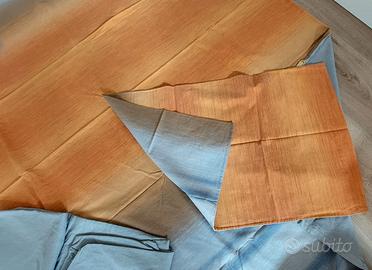 Copripiumino 1 piazza Bassetti 100% cotone nei toni dell'arancio scuro e chiaro e e grigio da un lato e tutto grigio dall'altro. E' compresa 1 federa e 1 lenzuolo con angoli grigio.