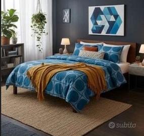 Copripiumino matrimoniale 240x220 cm con 2 federe coordinate da 50x80 cm in cotone e viscosa materiali naturali e traspiranti 2 tonalità di blu. Mai aperto. Prezzo non trattabile.