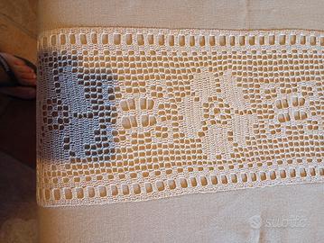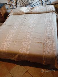 copripiumino vintage, matrimoniale, lavorato a mano in stile filet, colore neutro facilmente abbinabile.