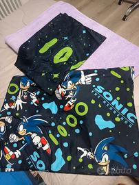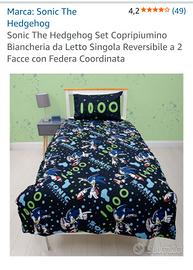copripiumino singolo di Sonic double face con federa coordinata. è nuovo mai usato perché ho un letto ad una piazza e mezza. tessuto in poliestere