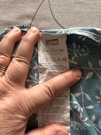 Copripiumine con federa per letto sinholo misura 155 x 220 cm . Colore blu con fiori bianchi. Chiusura con cerniera. Pari al nuovo.