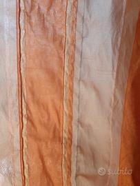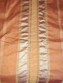 copripiumone matrimoniale in tessuto arancio e ocra con cuscino a rullo per poggiatesta