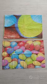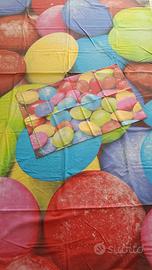 Copripiumone singolo con federa. Fantasia Smarties. Dimensioni copripiumone 150 x 190 cm. Dimensioni federa 50 x 80 cm.