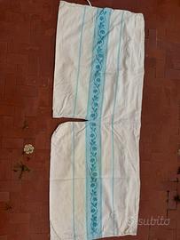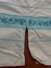 Retro spalliera per letto matrimoniale in cotone, ricami e motivi prodotto di artigianato sardo imbottito da 2 cuscini in feltro sfoderabili dal retro tramite zip, con spessore 2/3 cm, dimensioni 172 x 67 cm, poco utilizato e vendo per cambio d'arredo