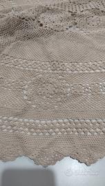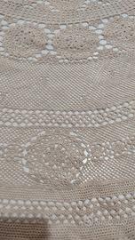 Copritavola fatto a mano all’uncinetto, in cotone di colore écru, tutto lavorato.
