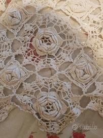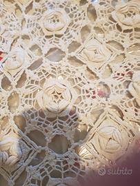 copritavolo quadrato 184cmx184cm,opera d arte,potrebbe essere utilizzato,a mio avviso in altri modi,fatto all uncinetto,avrà più di 100 anni....un bijou!!
