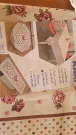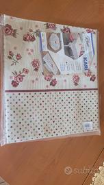 Copritavolo fantasia rose rosse e cuscino arredo coordinato. Misure copritavolo cm 100 ×:cm 100 misure cuscino cm 45 × cm 45