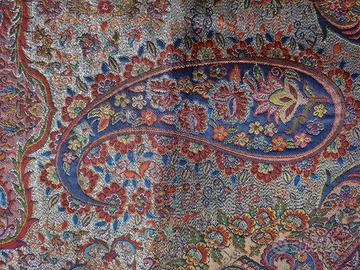 Due diversi copritavolo di manifattura iraniana, realizzati in raso e seta. Le dimensioni sono:
