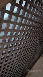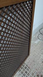 Il mobile è caratterizzato da una raffinata griglia a rombi incrociati che garantisce la perfetta fuoriuscita del calore, mantenendo un'ottima resa termica. La base superiore sporgente può essere utilizzata comodamente come mensola portaoggetti per cornici, svuotatasche o piccoli soprammobili.