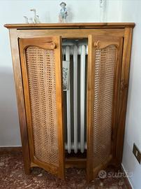Elegante copritermosifone in noce nazionale e paglia di Vienna (vera) costruito con grande cura da un falegname.