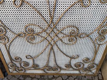 1 Copritermosifone con due fianchi in ferro, lavorazione artigianale colore crema, decori marroni. La verniciatura è da riprendere in alcune parti