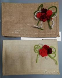 Coprivaso in juta naturale o colorata, con interno plastica. Decorazione in pannolenci.