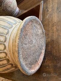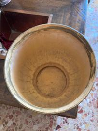 Bellissimo coprivaso in terracotta, dal colore beige e marrone chiaro, giallino. Ideale per piante o come elemento decorativo.