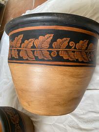 Vaso in terracotta, lavorazione e artigianale toscana, foggiato a tornio, di Trio Altopascio. Interno waterproof. Nuovo.