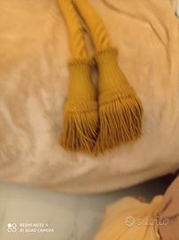 Lunghissimo cordone artigianale per tendaggi imponenti, colore senape, in puro cotone, doppio strato, doppia annodatura con nappe lavorate. Si tratta di un prodotto acquistato presso negozio di tendaggi Arquati a Genova, pagato più di 200 euro, alta qualità e alta sartoria.