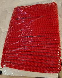 Stupendo cordone per tende rosso da 25m, spessore 10mm. Marca Liotex, acquistato in merceria, confezione mai aperta. La foto del cordone aperto è stata fatta da un'altra confezione che ho utilizzato.