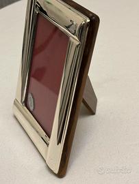 Cornice portafoto in argento 925 (marchio visibile) con retro in legno.