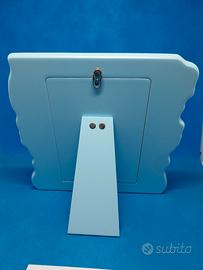 Argento AG 5G retro in legno laccato azzurro. Dimensioni cornice 19x19 cm. Dimensioni vano foto 9x13,5 cm. Nuova mai usata in confezione originale e certificato di garanzia. La scatola risulta un po danneggiata. Vendo nello stato in cui si trova con la formula vista e piaciuta.