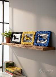 Non è la solita stampa piatta: il bassotto "esce" letteralmente fuori dalla cornice grazie alla tecnologia di stampa 3D. Colori vibranti, pattern geometrici e quell'anima un po' eccentrica che trasforma un angolo anonimo in una galleria d'arte moderna. Perfette come regalo originale o per dare un tocco unico alla tua casa o alla tua scrivania.